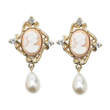 CAMEO PEARL DROP EARRINGS VINTAGE STYLE CAMEO