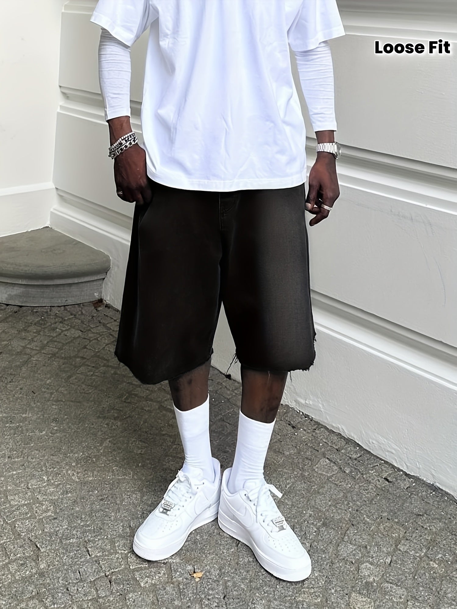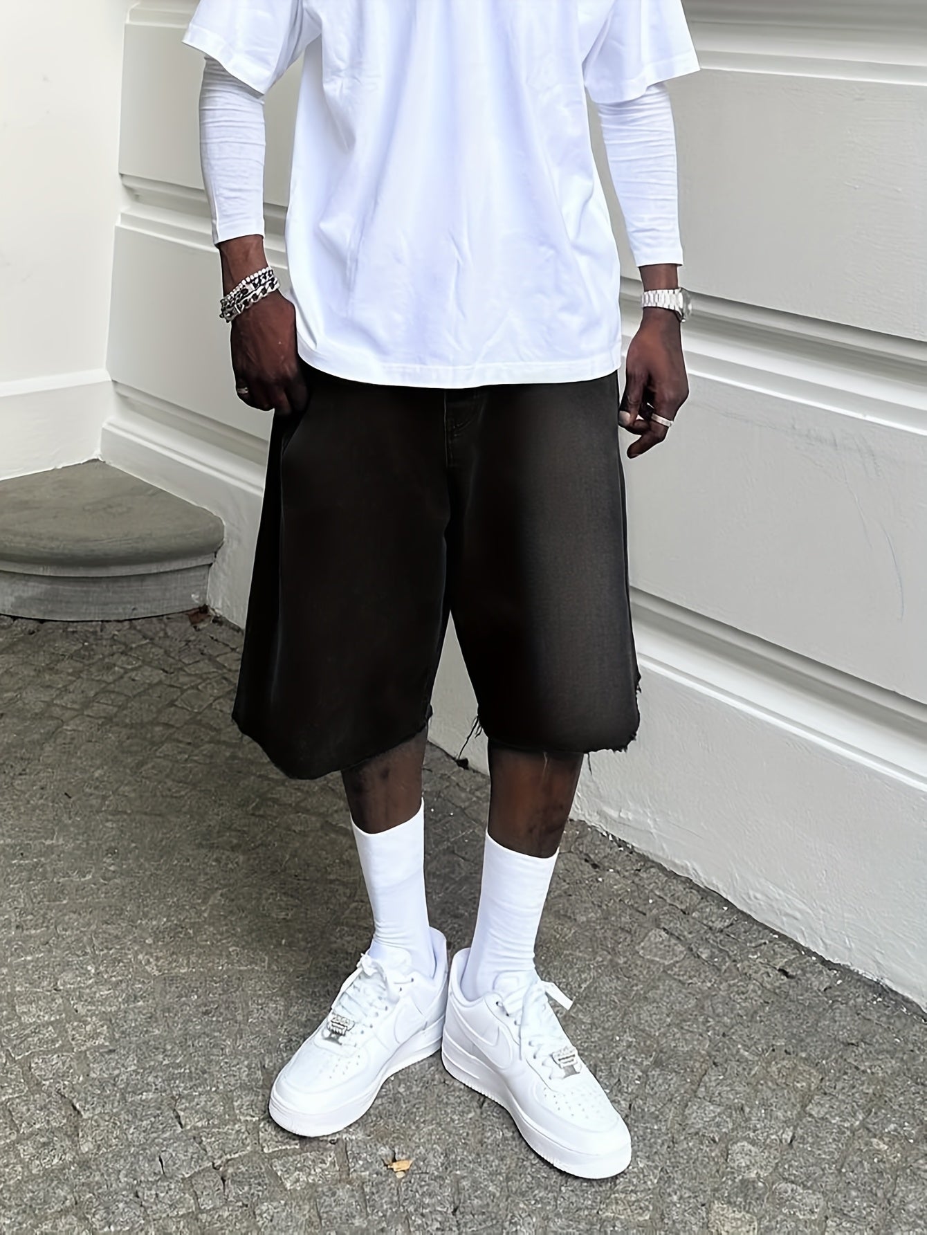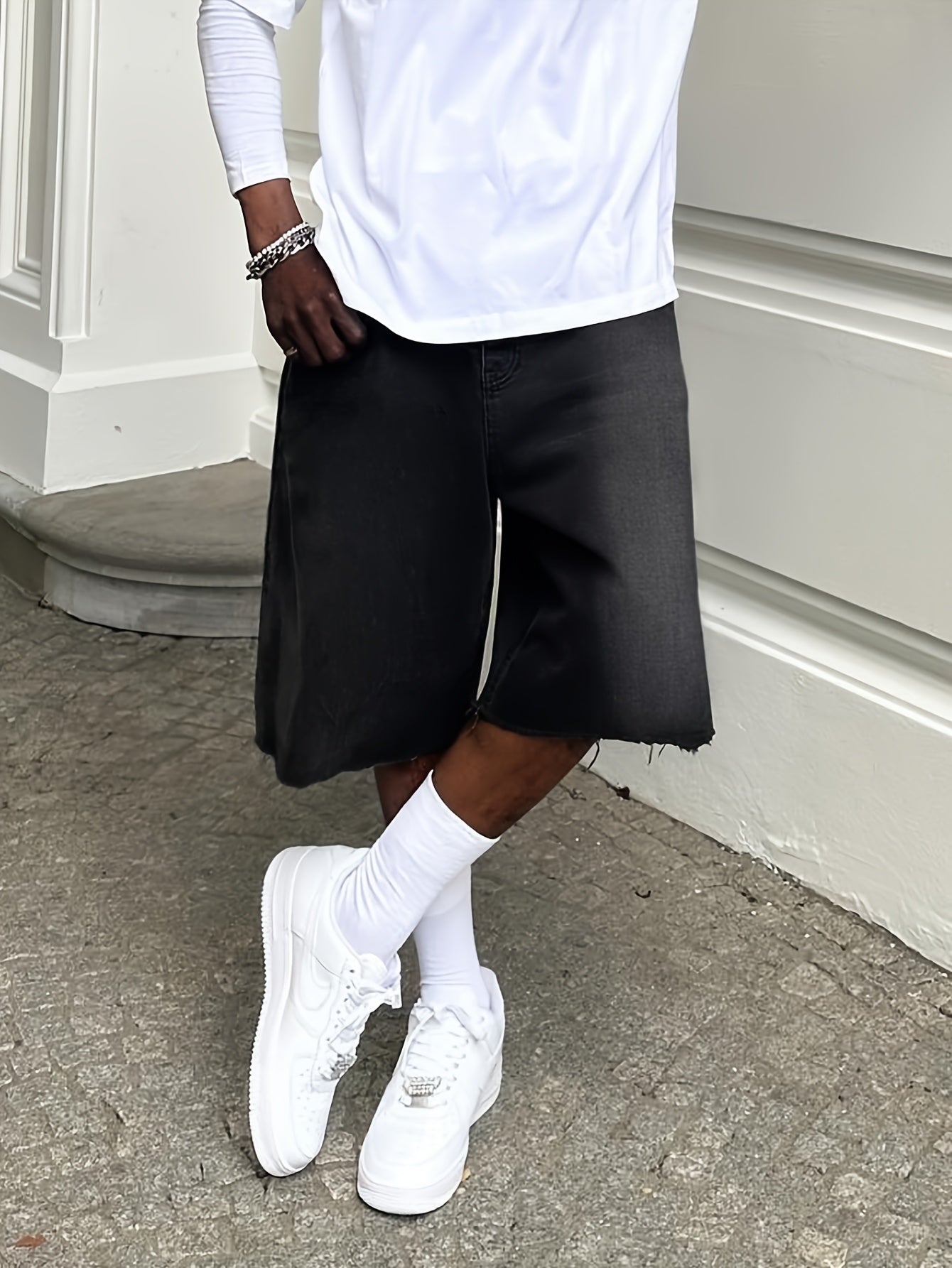 Design Description: These Bermuda shorts embody a relaxed vintage aesthetic with a versatile loose silhouette that offers both comfort and style. Inspired by timeless denim fashion, the cut emphasizes a mid-waist design complemented by knee-high length, creating a balanced and flattering silhouette suitable for a variety of casual and semi-casual occasions. The color block pattern adds a modern twist to a classic silhouette, making these shorts not only functional but also fashionable.