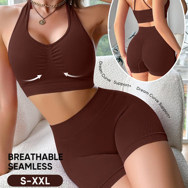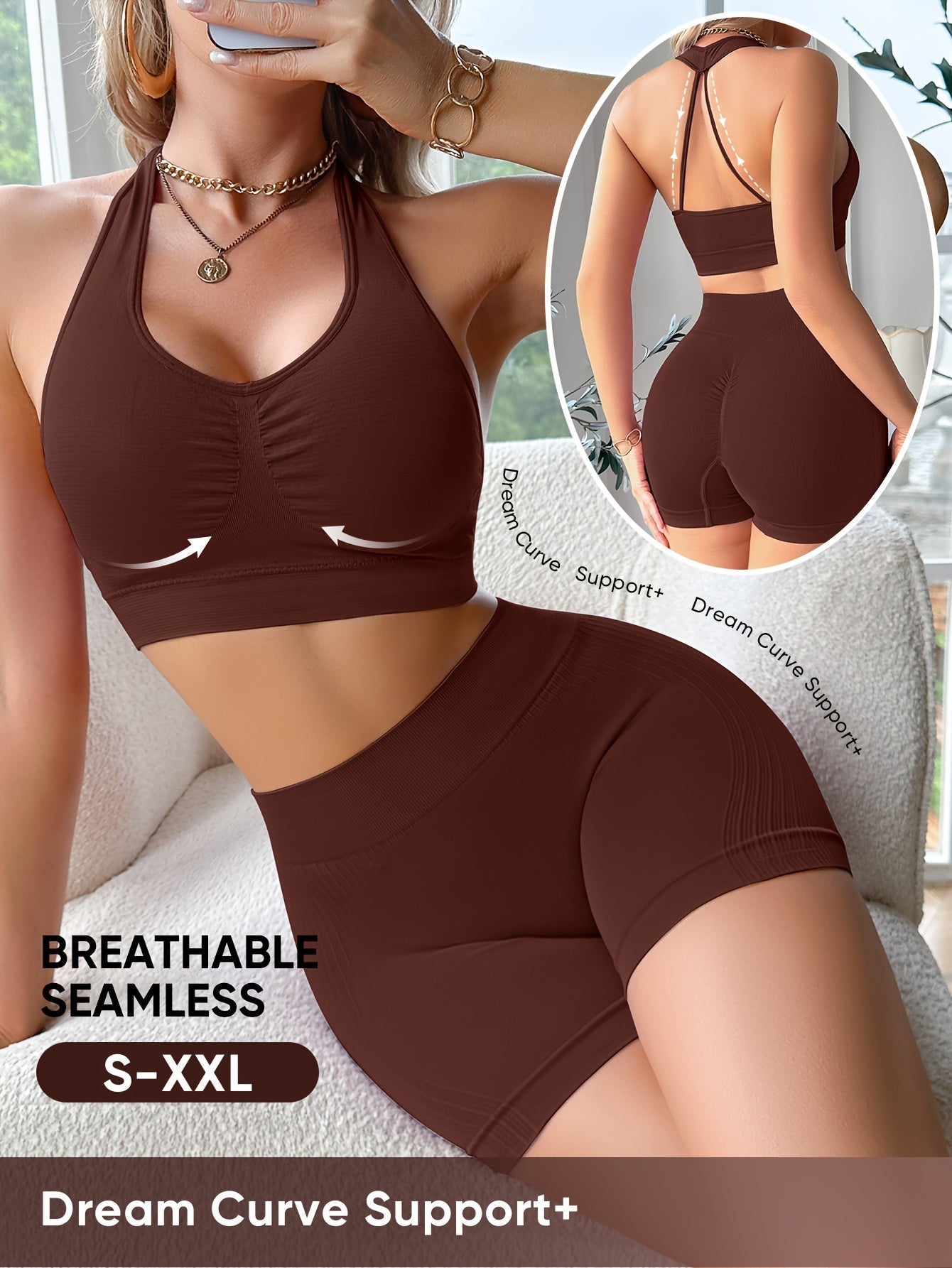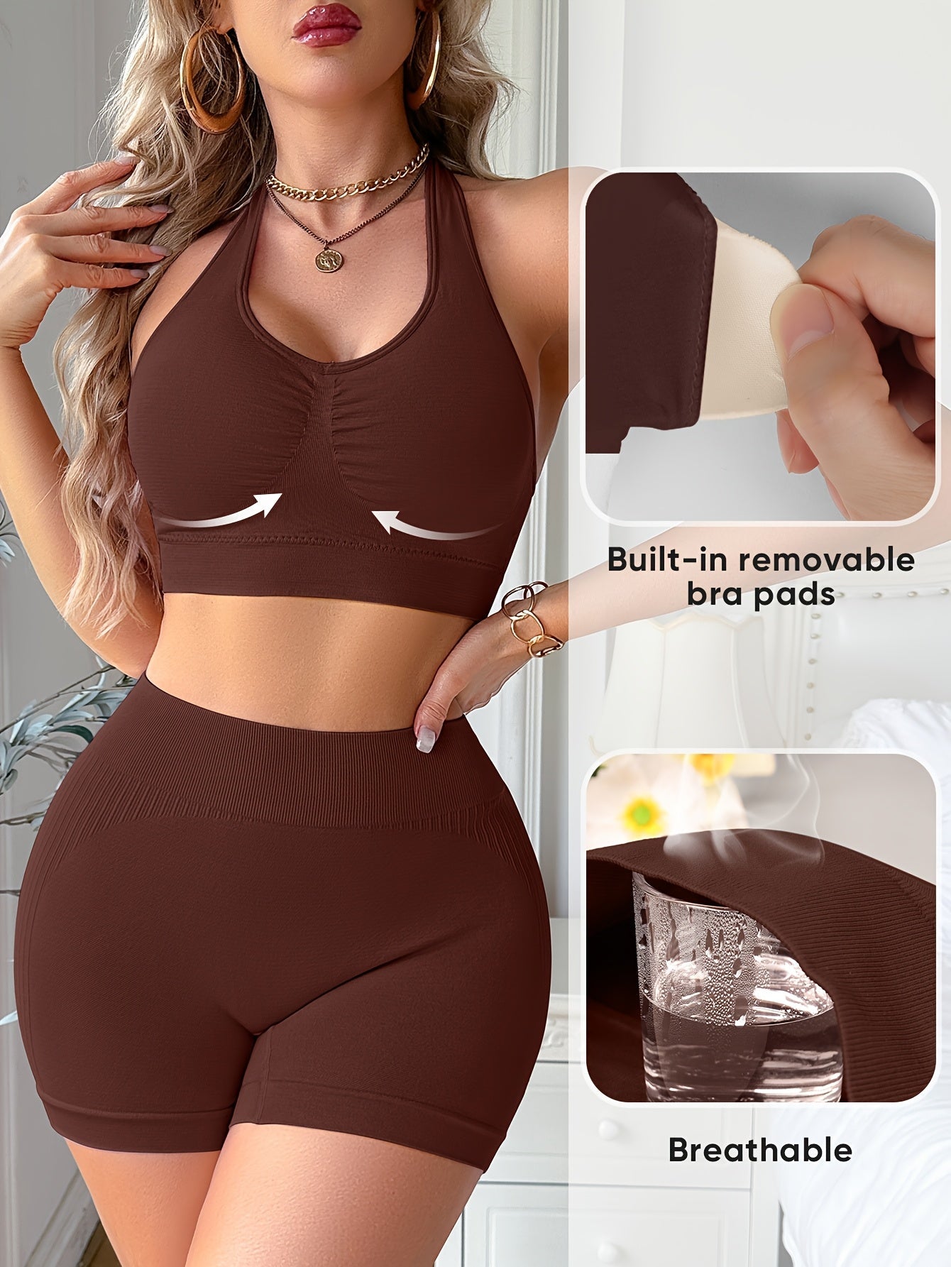 HALTER TOP AND SHORTS SET SOLID COLOR KNIT FABRIC