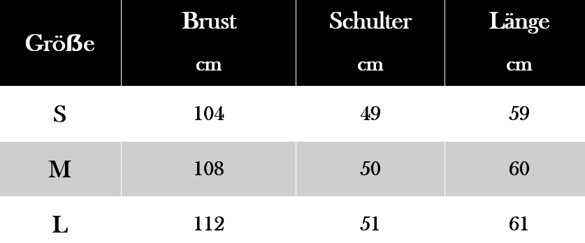 Wir akzeptieren Rücksendungen und Umtausch innerhalb von 15 Tagen nach Erhalt Ihrer Bestellung. Die Artikel müssen im Originalzustand, ungetragen und mit angebrachten Etiketten sein. Weitere Einzelheiten finden Sie auf unserer Seite „ Rückgabebedingungen “.