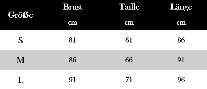Wir akzeptieren Rücksendungen und Umtausch innerhalb von 15 Tagen nach Erhalt Ihrer Bestellung. Die Artikel müssen im Originalzustand, ungetragen und mit angebrachten Etiketten sein. Weitere Einzelheiten finden Sie auf unserer Seite „ Rückgabebedingungen “.