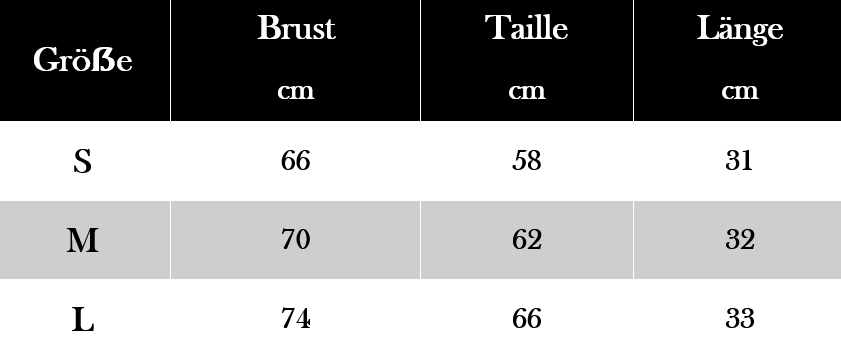 Wir akzeptieren Rücksendungen und Umtausch innerhalb von 15 Tagen nach Erhalt Ihrer Bestellung. Die Artikel müssen im Originalzustand, ungetragen und mit angebrachten Etiketten sein. Weitere Einzelheiten finden Sie auf unserer Seite „ Rückgabebedingungen “.