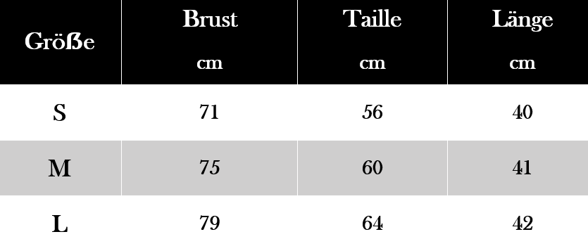 Wir akzeptieren Rücksendungen und Umtausch innerhalb von 15 Tagen nach Erhalt Ihrer Bestellung. Die Artikel müssen im Originalzustand, ungetragen und mit angebrachten Etiketten sein. Weitere Einzelheiten finden Sie auf unserer Seite „ Rückgabebedingungen “.