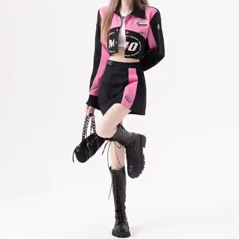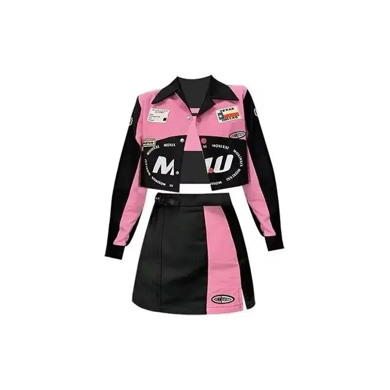 Racing rok en jas set met contrasterend kleurmatchend ontwerp