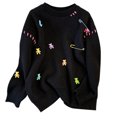 Este suéter oversized de malha que chama a atenção é cuidadosamente desenhado para combinar charme divertido com conforto contemporâneo. A peça apresenta enfeites vibrantes 3D de ursinhos de goma, meticulosamente elaborados para adicionar um elemento divertido e fantasioso ao seu guarda-roupa. Complementado por detalhes coloridos em costura, este suéter incorpora uma estética alegre e jovem, tornando-se uma escolha ideal para quem procura expressar individualidade através da moda. A sua silhueta descontraída garante um ajuste confortável enquanto mantém um visual estiloso e moderno inspirado nas tendências de streetwear casual e street style.