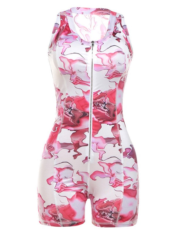 FLORAL ROMPER WITH FRONT ZIPPER - SLIM FIT VINTAGE PRINT ZIPPER